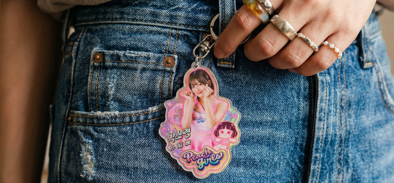 把球場的心動,直接掛進你的日常。壓克力搭配雷射幻彩效果,一轉動就閃出不同色光;真人寫真 × Q 版角色同框,甜度剛剛好、可愛不甜膩。